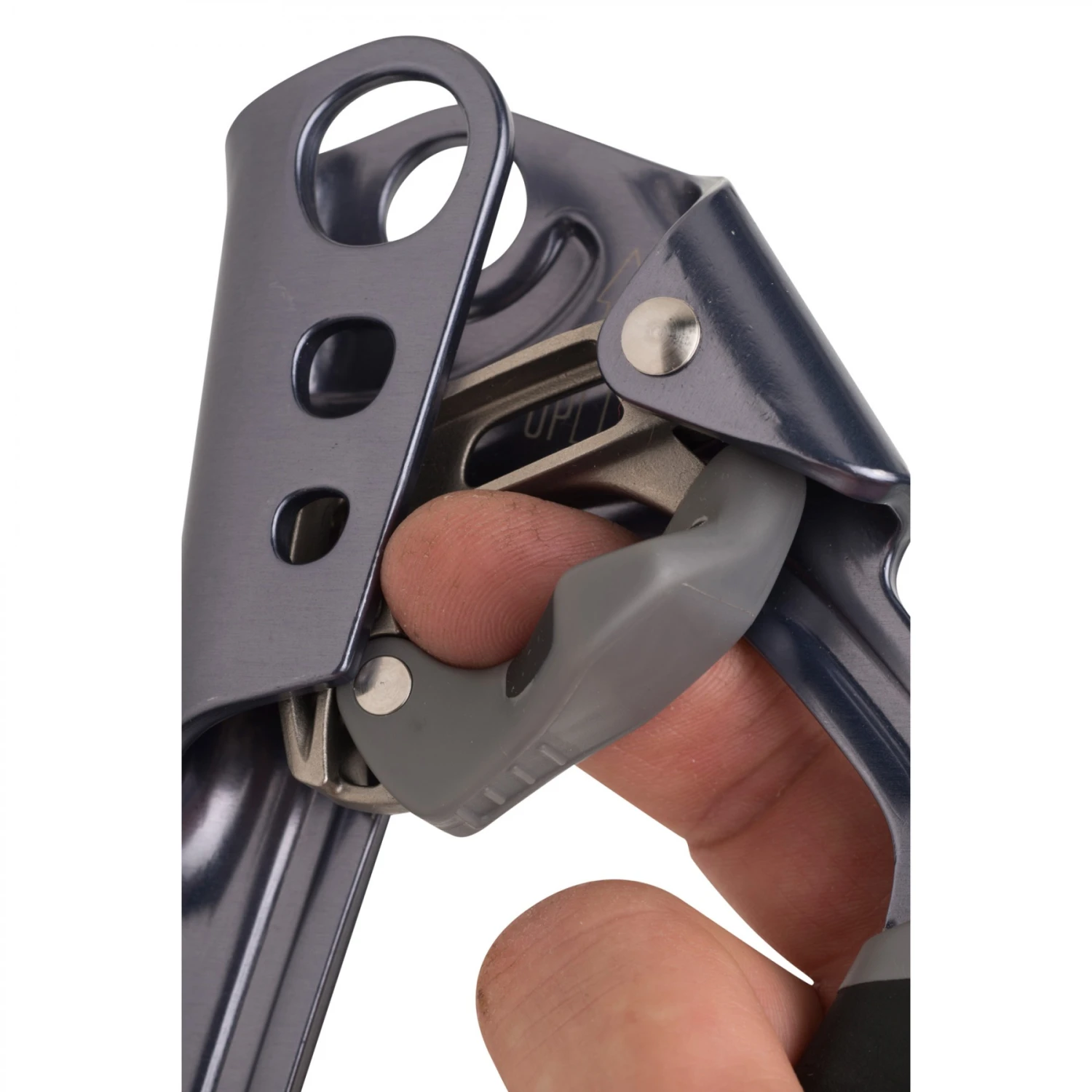 Pushing the evolution of ascenders, the Index features a trigger release for fast, effortless operation on hard-to-clean pitches and uses an ergonomic, dual-density grip to increase comfort for long days on the wall. Engineered for hard-to-clean pitches, wild conditions and long days, the Black Diamond Index Ascender is a robust workhorse for jugging in all weather. The ascender’s trigger-finger release allows for hassle-free operation and its molded grip and lightened frame offer quick maneuverability and mobility. With aggressive teeth, the Index is primed for gripping icy ropes, and a large clip-in point and left- and right-handed versions add compatibility.