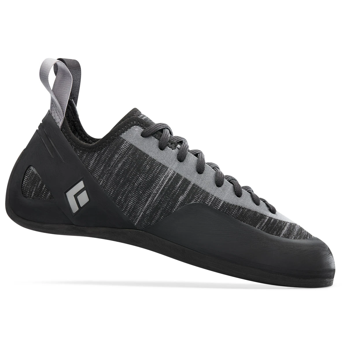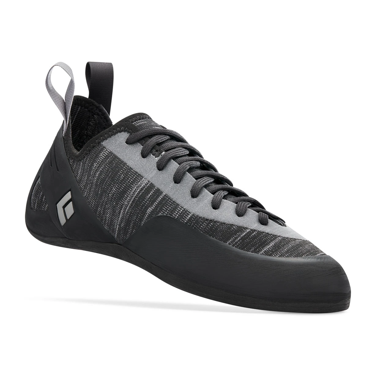 Featuring Engineered Knit Technology for exceptional breathability and an innovative proprietary molded rubber, the Momentum Lace is built for ultimate comfort and excels in performance. Designed as the perfect entry-level climbing shoe, this lace-up shoe provides ultimate adjustability for all day comfort at the gym or crag. The men’s Momentum Lace combines innovative technology with a classic, flat-last design. With an upper fabric that consists entirely of Engineered Knit Technology, the Momentum Lace provides stretch where you need it and support where it matters. Black Diamond also added a microfiber liner to the front of the shoe to minimize stretch and maximize comfort. The Momentum’s durable rubber is unique in that it’s molded, versus cut from one sheet of rubber, optimizing the rubber and rands for durability and comfort.
