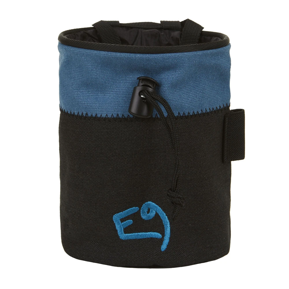 The Aglio C is a big cylindrical chalk bag with color-contrasted E9 embroidery on the front.