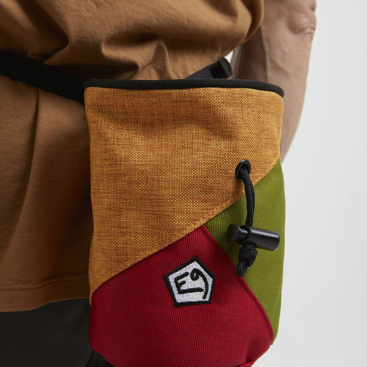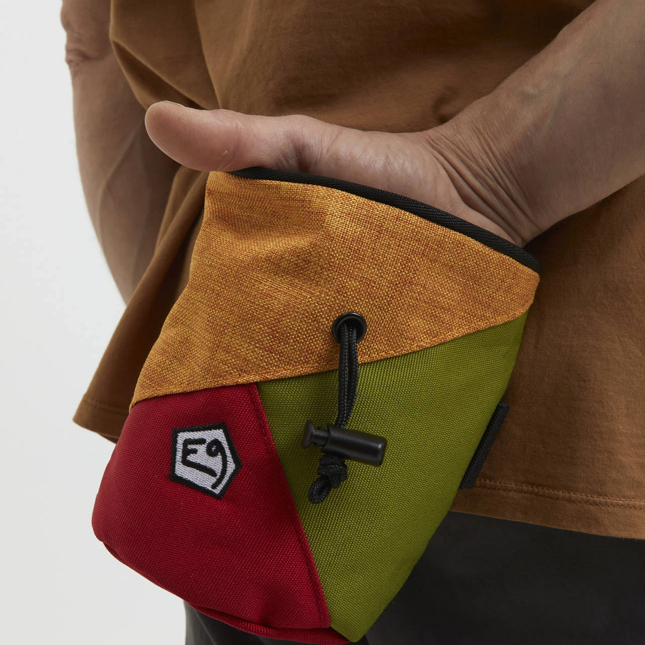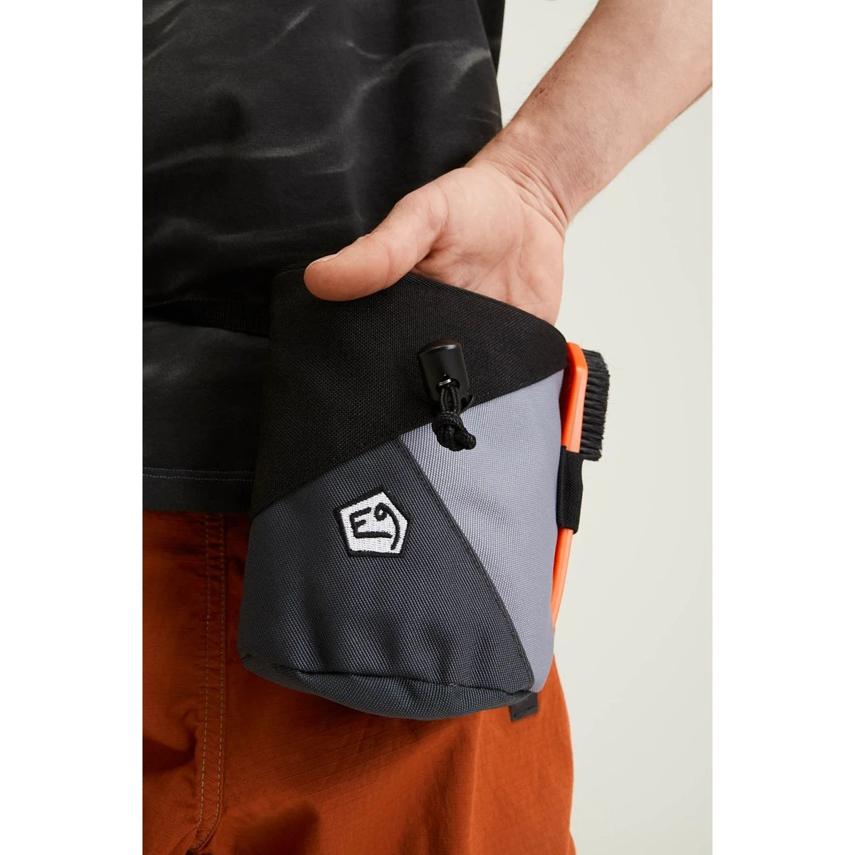 The ZUCCA is a big chalk bag with color contrast. E9 doubloon embroidery on the front. Exclusive cylindrical shape.