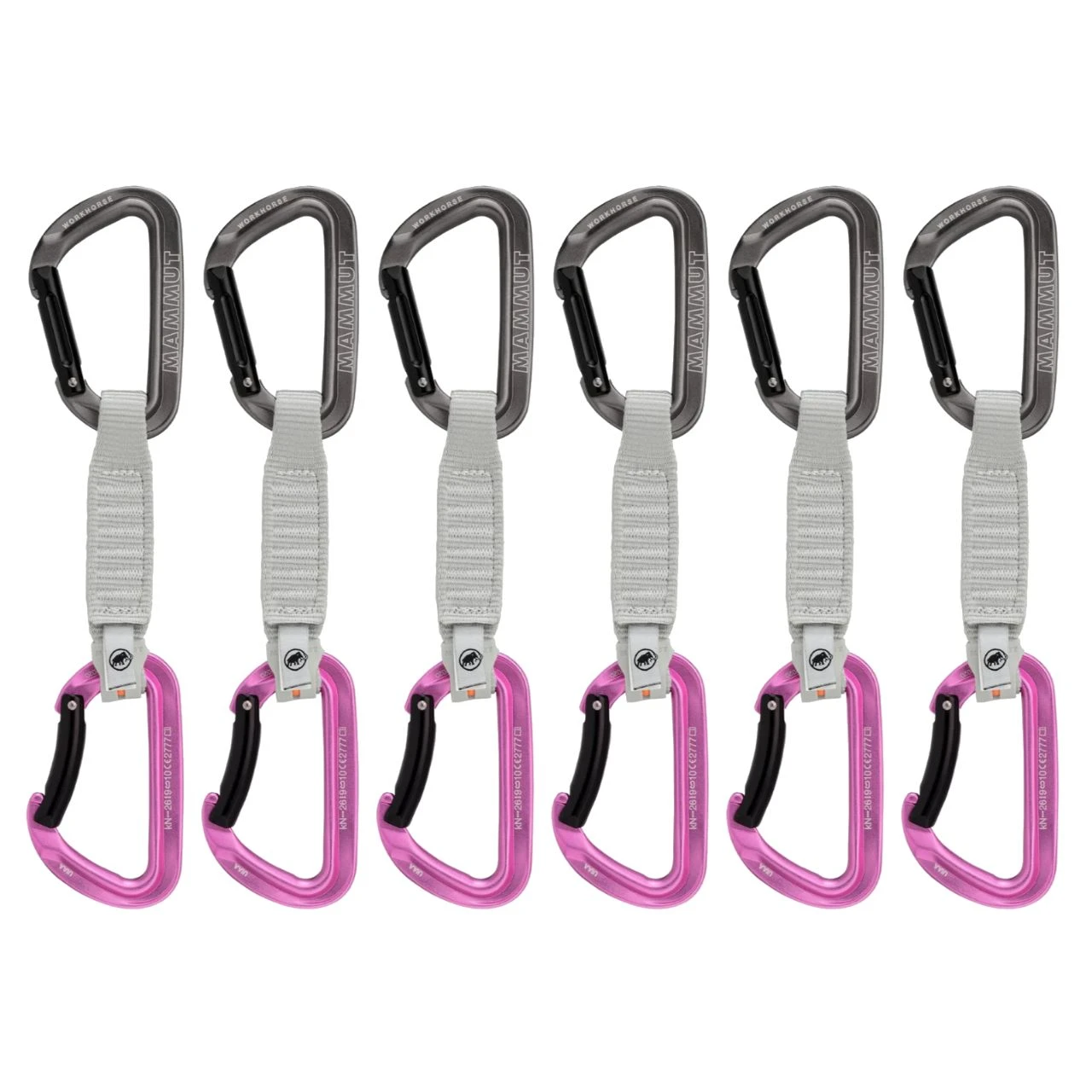 The Mammut Workhorse Keylock quickdraw is setting standards in handling and performance. The ergonomically shaped carabiner sits perfectly in your hand. Its generous geometry, the ribbed grip zone on the straight gate and the improved keylock nose allow easier clipping and unclipping. The innovative profile construction makes it extremely robust and at the same time saves weight. The polyester sling provides a firm grip; a robust sling protector keeps the lower carabiner in place and reduces wear. A bright orange indicator shows that the sling and protector are attached correctly to the carabiner. Leaving you free to focus on climbing.